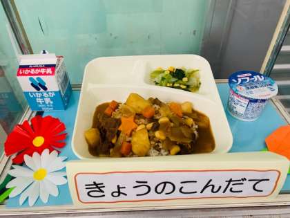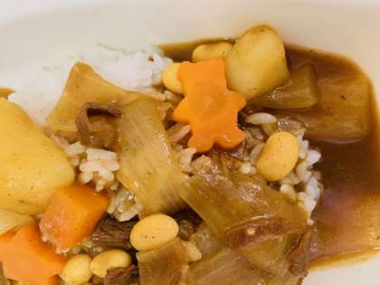 今日のカレーライスには、ラッキーにんじんがはいっていました。