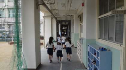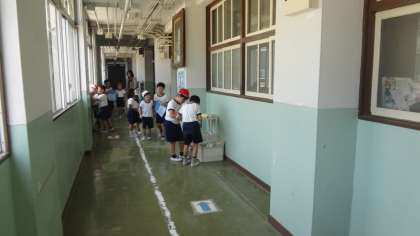 1・2年生が「学校たんけん」をしています。