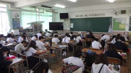 4年生は運動会の団体演技の練習、5年生は社会科のテストをがんばっています。