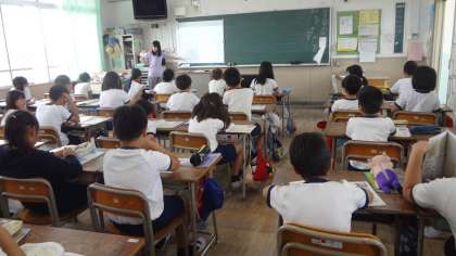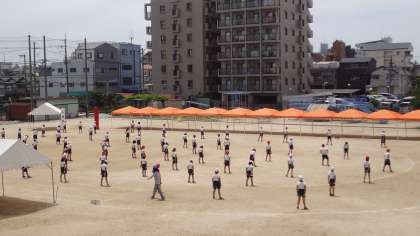 ごみの量について考えたり、運動会の団体演技の練習をしたりしています。