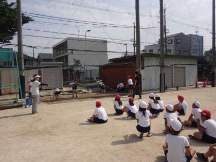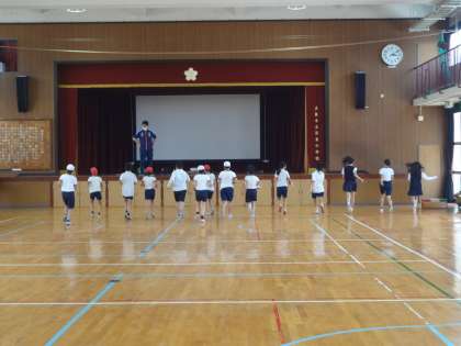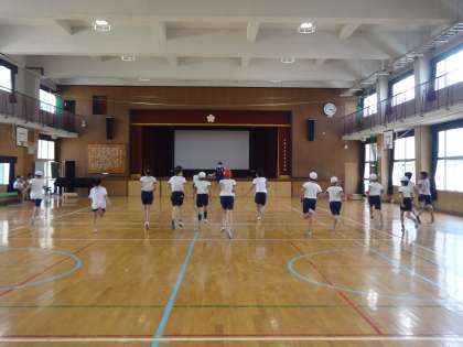 6年生が20mシャトルランと立ち幅とびに取り組んでいます。