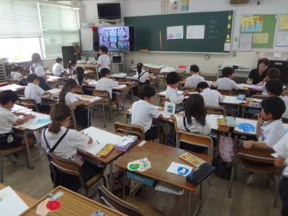 あじさいを画用紙に描いたり、図書室で本を読んだりしています。