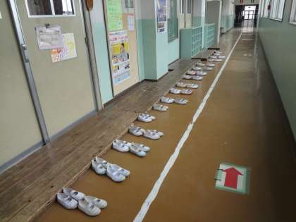 図書室前に脱いだ上ぐつもきれいにそろっています。
