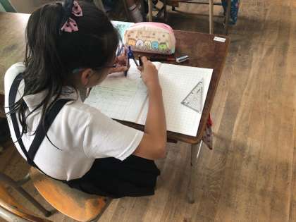 4年生の算数では、台形や平行四辺形や長方形などさまざまな四角形の対角線の特徴をコンパスなどをつかって調べました。