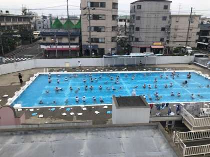 5年生は着衣泳をしました。ペットボトルをつかって浮く方法などを学び、もしもの時にどうやって命を守るかを考えました。