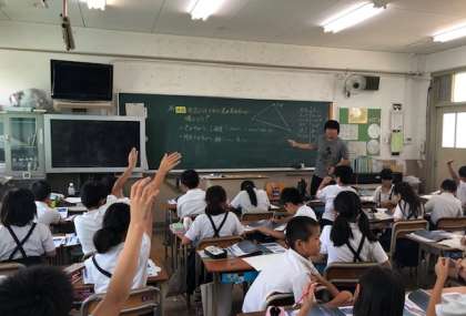 2年生の授業では、返却してもらったテストの問題を見直しながら、どんなふうに解けばいいのかを考え復習しました。