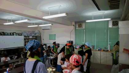 夕食のカレーづくりをPTAのみなさんにしていただいています。