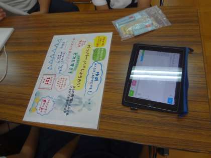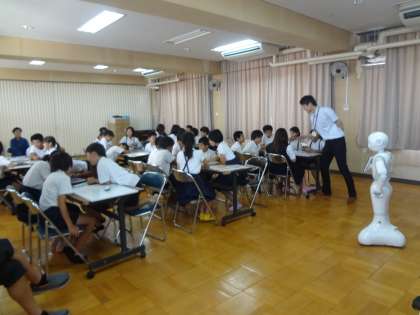 タブレットに入力し、ペッパーくんを動かしたり、話をさせたりしています。