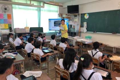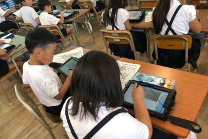 2年生の生活科の授業では、タブレットをつかって町たんけんのまとめをしています。