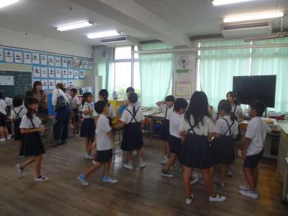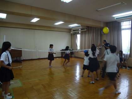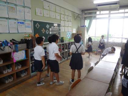 高学年が低学年に声をかけながら一緒に活動できています。