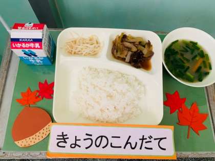 プルコギ、トック、、もやしの甘酢あえ、ごはん、牛乳