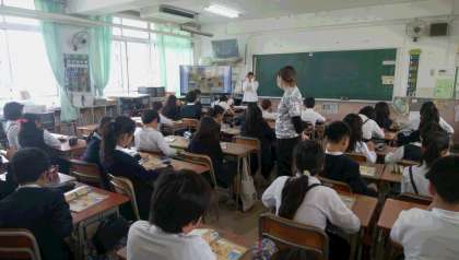 5年生はタグラグビーや外国語の学習をしています。