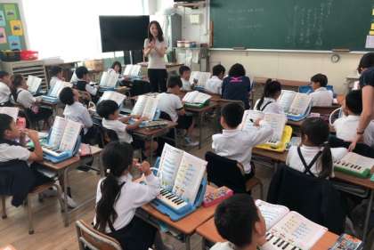 1年生の音楽では、どんぐりさんのおうちを鍵盤ハーモニカで弾く練習をしました。