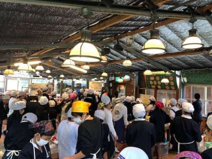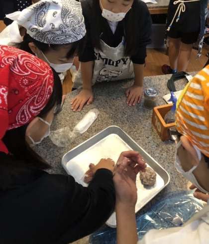 グループで協力してウインナーを作ります。