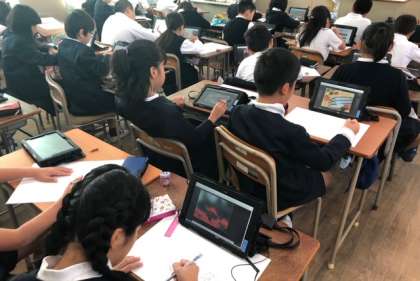 4年生はタブレットで調べた秋のものを絵に表しました。