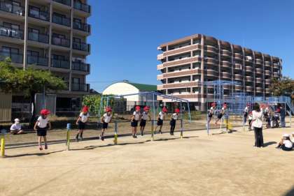 1年生の体育では、縄跳びや鉄棒をしました。