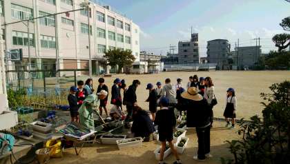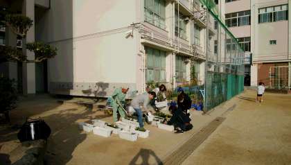PTA地区緑化委員会のみなさんと栽培委員会児童が一緒に活動しました。