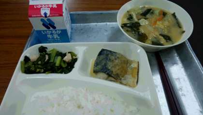 さばのみぞれかけ みそ汁 こまつなの煮びたし ごはん 牛乳