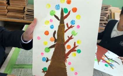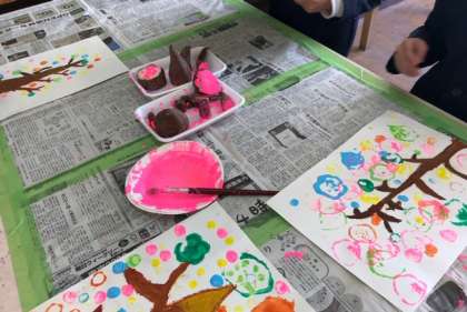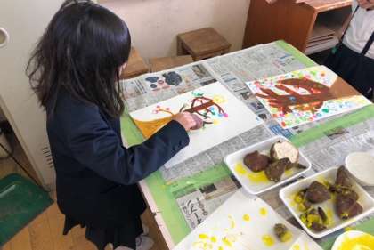 2年生は学習園で育てたさつまいもをつかって絵を描きました。