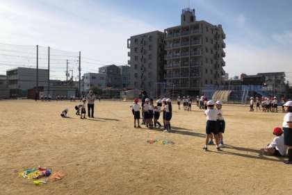 2年生の体育では、大縄跳びにチャレンジしました。タイミングよく入って跳ぶことができるようになってきました。