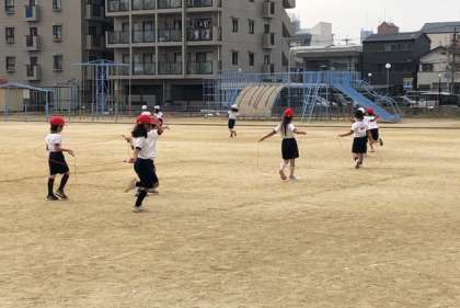1年生の体育のようすです。自分のペースで上手に駆け足跳びをしていました。