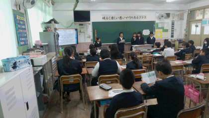 5年生はタブレットを活用して日本の伝統工芸や文化について、グループで発表しています。