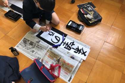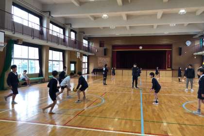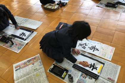 6年生は学級活動でバスケットボールをしたり、書写で書初めをしたりしました。