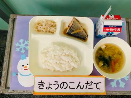 さばのみそ煮、すまし汁、もやしのゆずの香あえ、ごはん、牛乳
