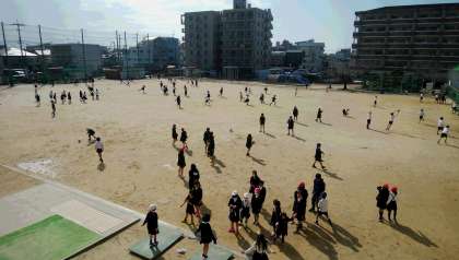 運動場も乾いて、昼休みから使えるようになりました。