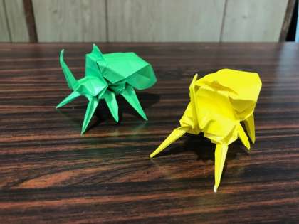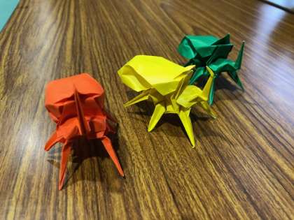 ちなみに、カブトムシの折り方はとても複雑なので、ホームページに載せることができませんでした。。。学校が始まったら折り方を教えるので、ぜひチャレンジしてくださいね。