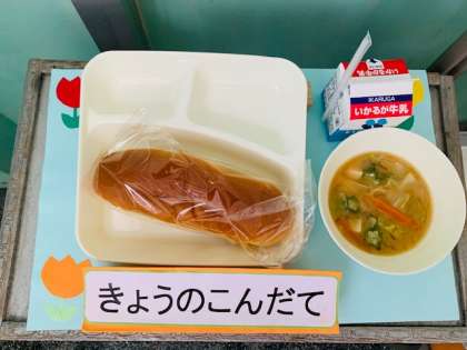 みそ汁、パンプキンパン、牛乳