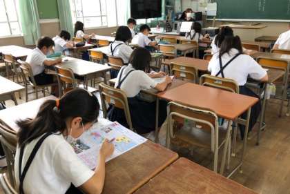 5年生は社会科の単元テスト、6年生は国語で詩の学習をしました。