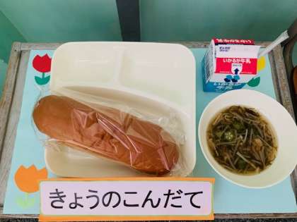 もずくとオクラのとろり汁、黒糖パン、牛乳