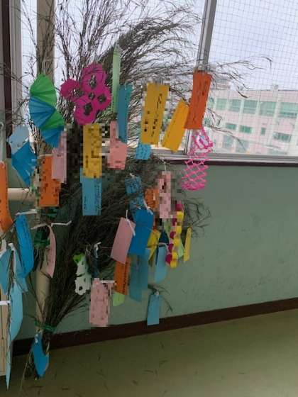 本日は7月7日、五節句の一つ七夕です。あいにくの天候で天の川を見ることは難しそうですね。3年生は願いを書いた短冊を笹の葉に結んでいました。願い事が叶うといいですね。
