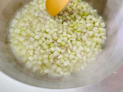 給食室でとうがんの煮を作っているようすです。