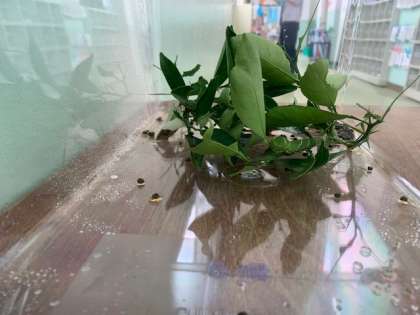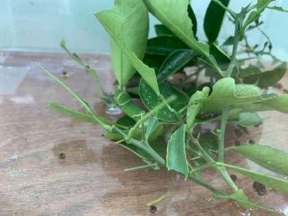 3年生は「チョウを育てよう」の学習をします。そしてアゲハの幼虫を育てています。さて、アゲハの幼虫がどこにいるのかわかりましたか?