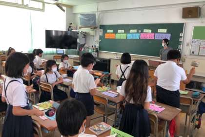 4年生は、グループに分かれていろんな木の実の合奏をしました。からだ全体でリズムをとりながらじょうずに演奏することができました。