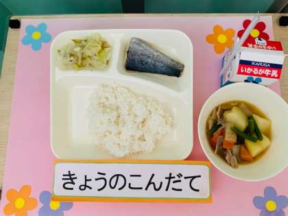 さごじの塩焼き、豚肉とじゃがいもの煮もの、キャベツの梅風味
