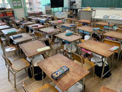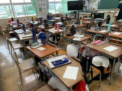 本日、南海トラフ巨大地震を想定した大阪880万人訓練が行われました。本校でも、児童が自分の身を守る行動に繋げ、防災意識を向上させるために、この訓練の時間に合わせ防災訓練を実施しました。