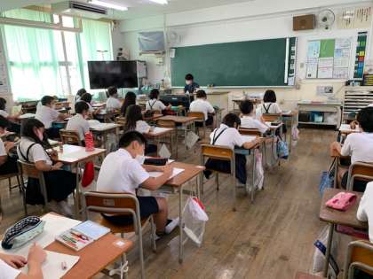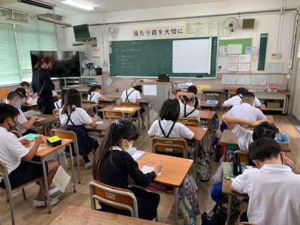 4年生の学習のようすです。1組は算数科の学習、2組は道徳、3組は理科の単元テストをしました。みんなとても真剣に取組んでいました。