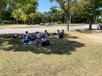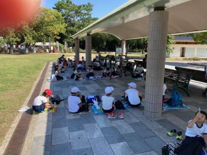 少し距離をとりながら、みんなで楽しくお弁当を食べています。