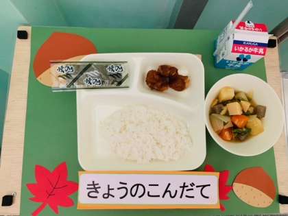 みそカツ、じゃがいもと野菜の煮もの、焼きのり、ごはん、牛乳