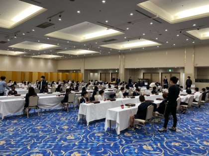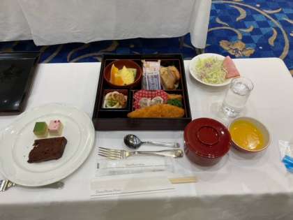 待ちに待った夕食タイムです。感染症対策のため友だちといつもより少し距離をとって食べます。