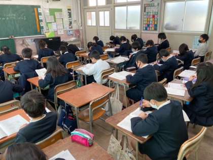 昨日に引き続き、学力経年調査を実施しました。今日は算数、理科、英語(5、6年のみ)の3教科に取り組みました。