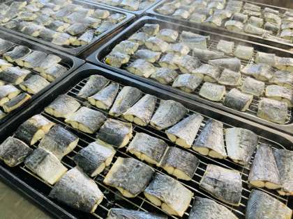 さごしのしょうゆだれかけ、みそ汁、みずなの煮びたし、ごはん、牛乳