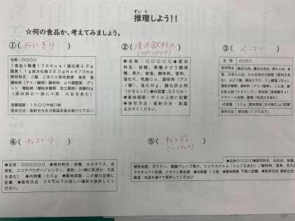 1.おにぎり 2.清涼飲料水 3.ベーコン 4.チョコレート 5.キャンディー