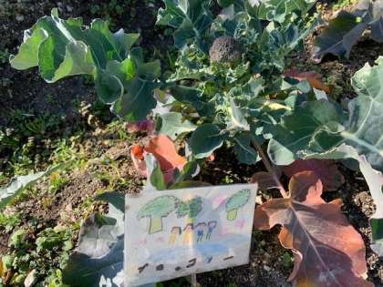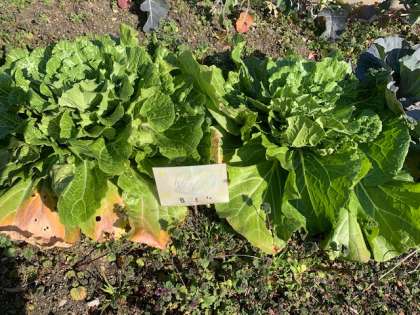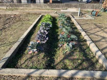 学習園のようすです。寒空の中、白菜とブロッコリーが元気に育っています。
