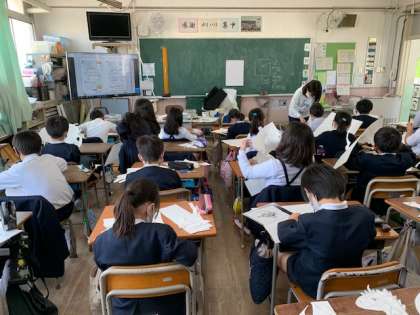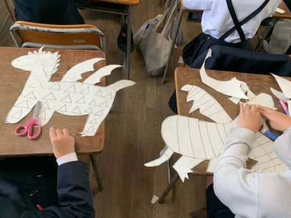 3年生の図画工作のようすです。「竜を描こう」をテーマに、子どもたちそれぞれの竜を制作しています。