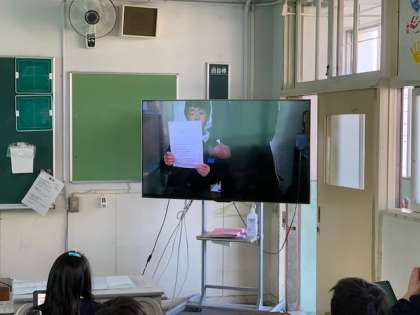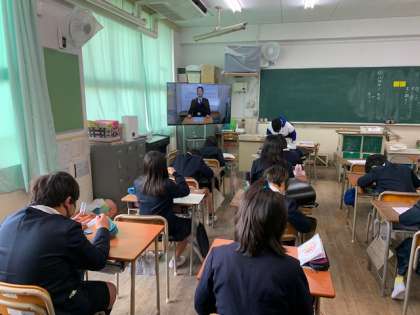 児童朝会(テレビ放送)のようすです。今日の児童朝会は校長先生のお話しの後、本校で取組んでいる3つの「いいね!」のシールが50枚集まった児童の表彰がありました。また、運営委員会の児童からは「時間を守ろう週間」のお知らせがありました。今週も時間を守れるようしっかり行動しましょう!