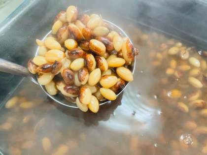 肉じゃが、はくさいのゆず風味、とら豆の煮もの、ごはん、牛乳